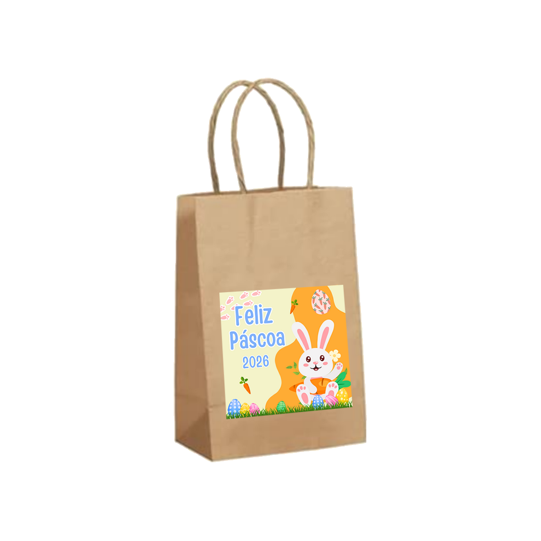 Sacolinhas de papel Kraft personalizadas com papel fotográfico adesivo.