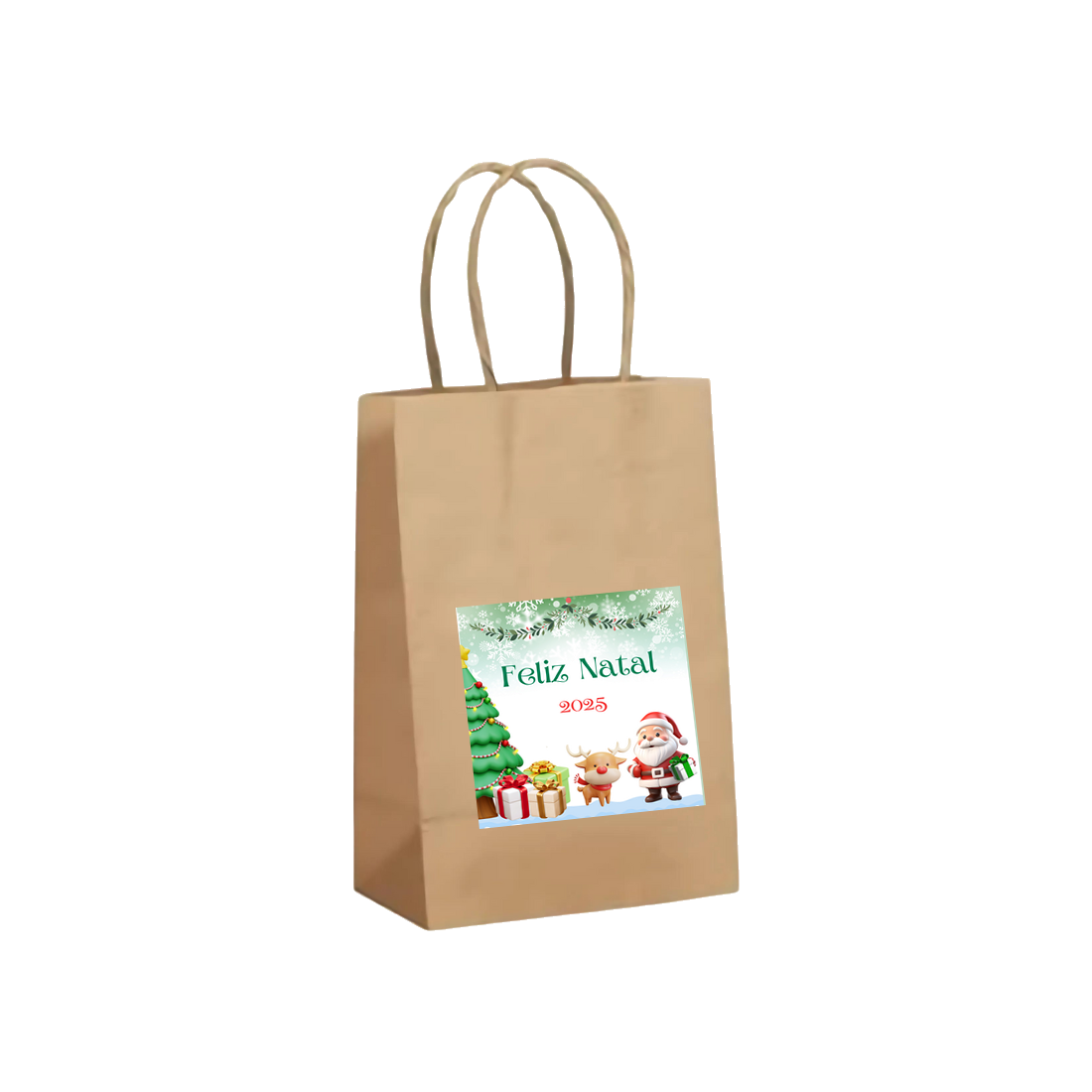 Sacolinhas de papel Kraft personalizadas com papel fotográfico adesivo.